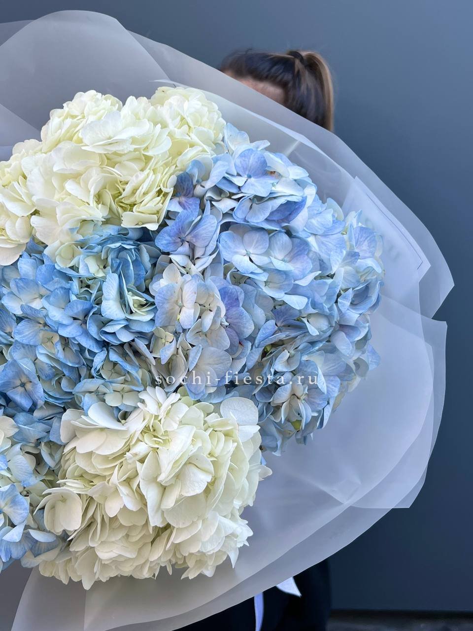 Для заказа товара "5 бело-голубых гортензий" с доставкой в Кирове нажмите в корзину
