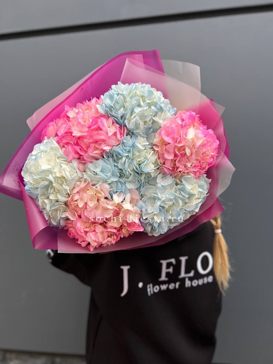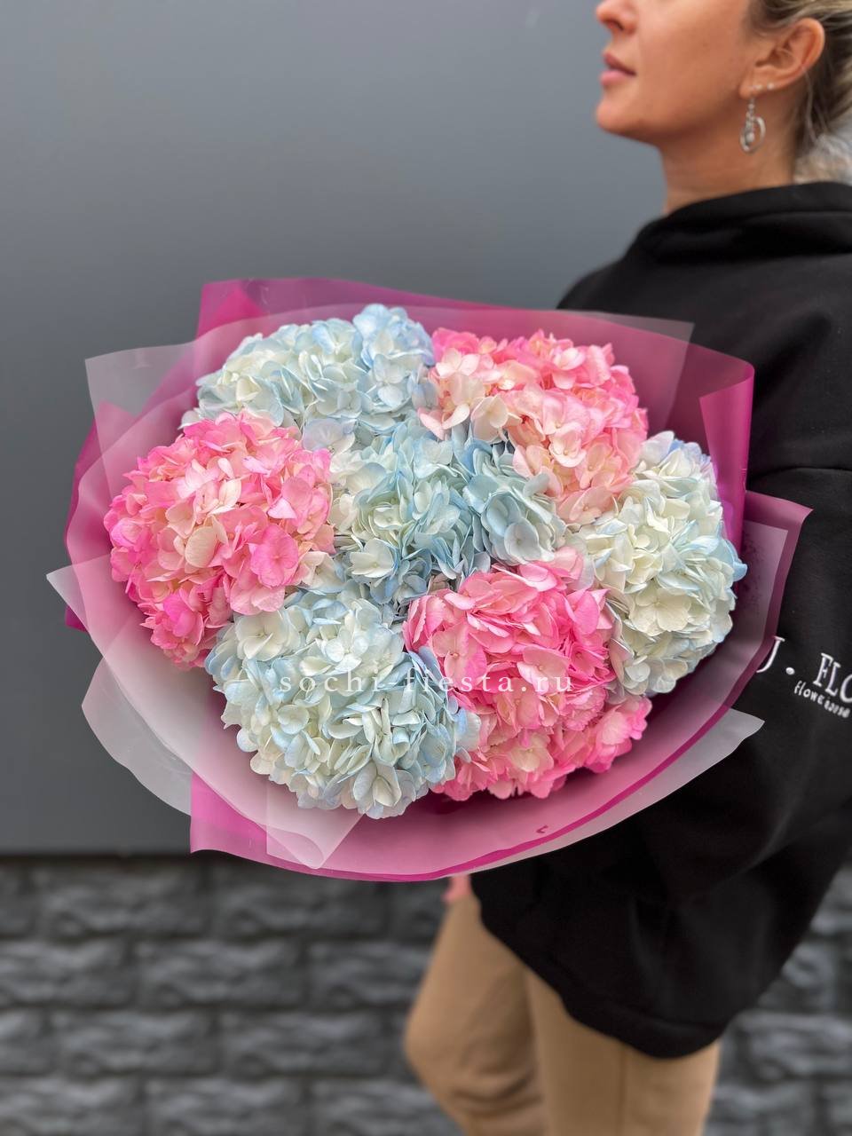 гортензия 15 шт., лента, дизайнерская упаковка.