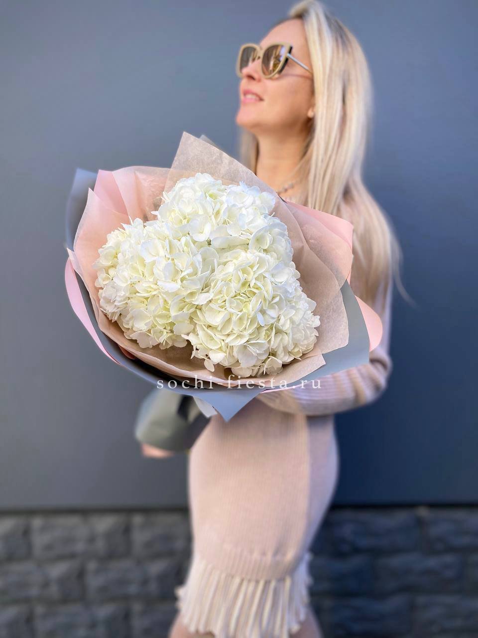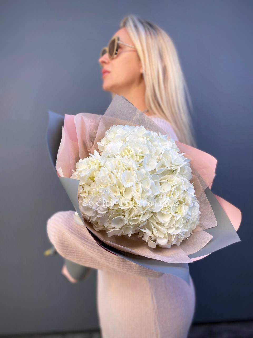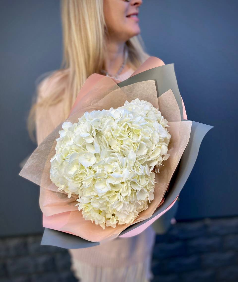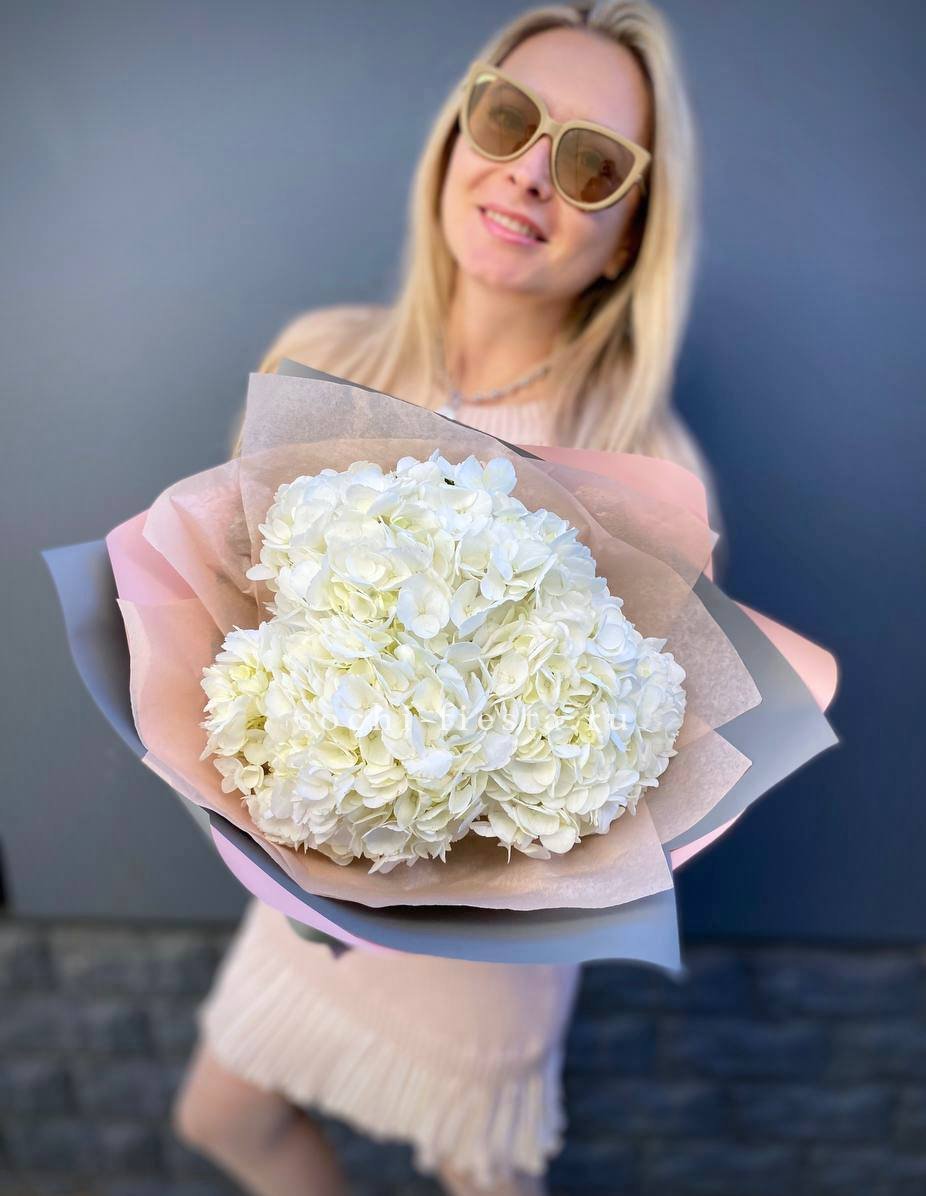 Для заказа товара "Букет из трёх белых гортензий" с доставкой в Кирове нажмите в корзину