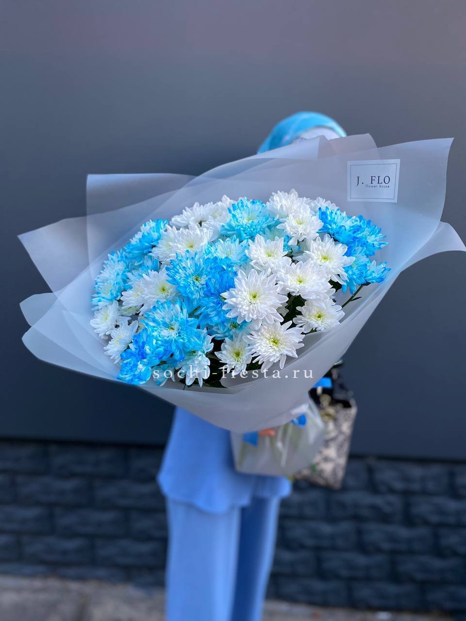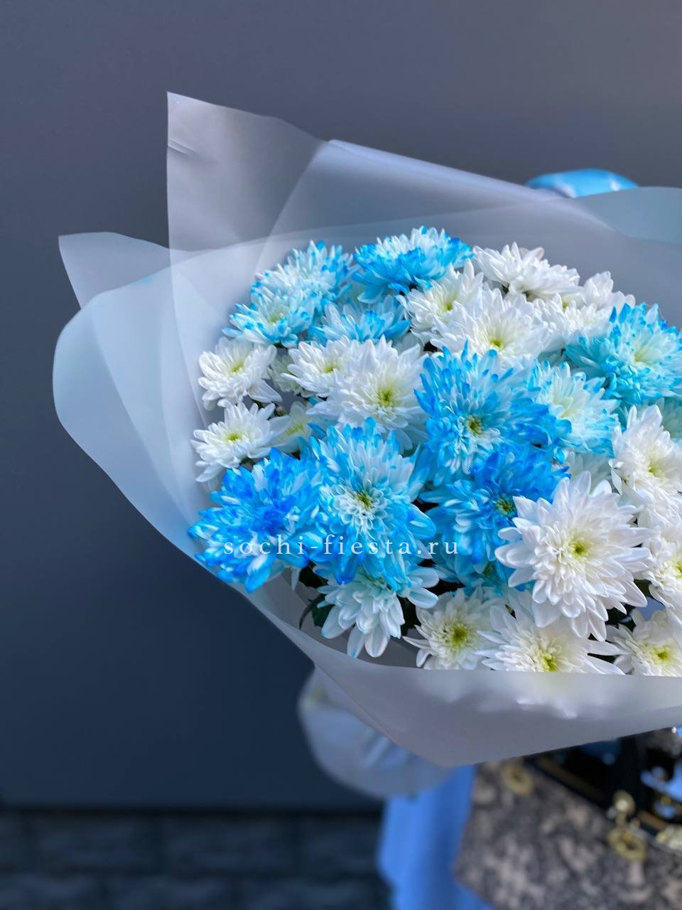 Букет нежно-голубых хризантем