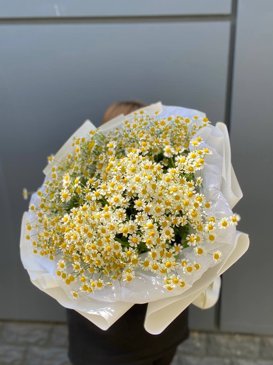 ромашки (танацетум камилла) - 15 веток, лента, упаковка.