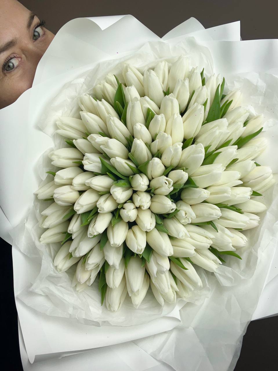 Для заказа товара "101 белый тюльпан №2" с доставкой в Кирове нажмите в корзину