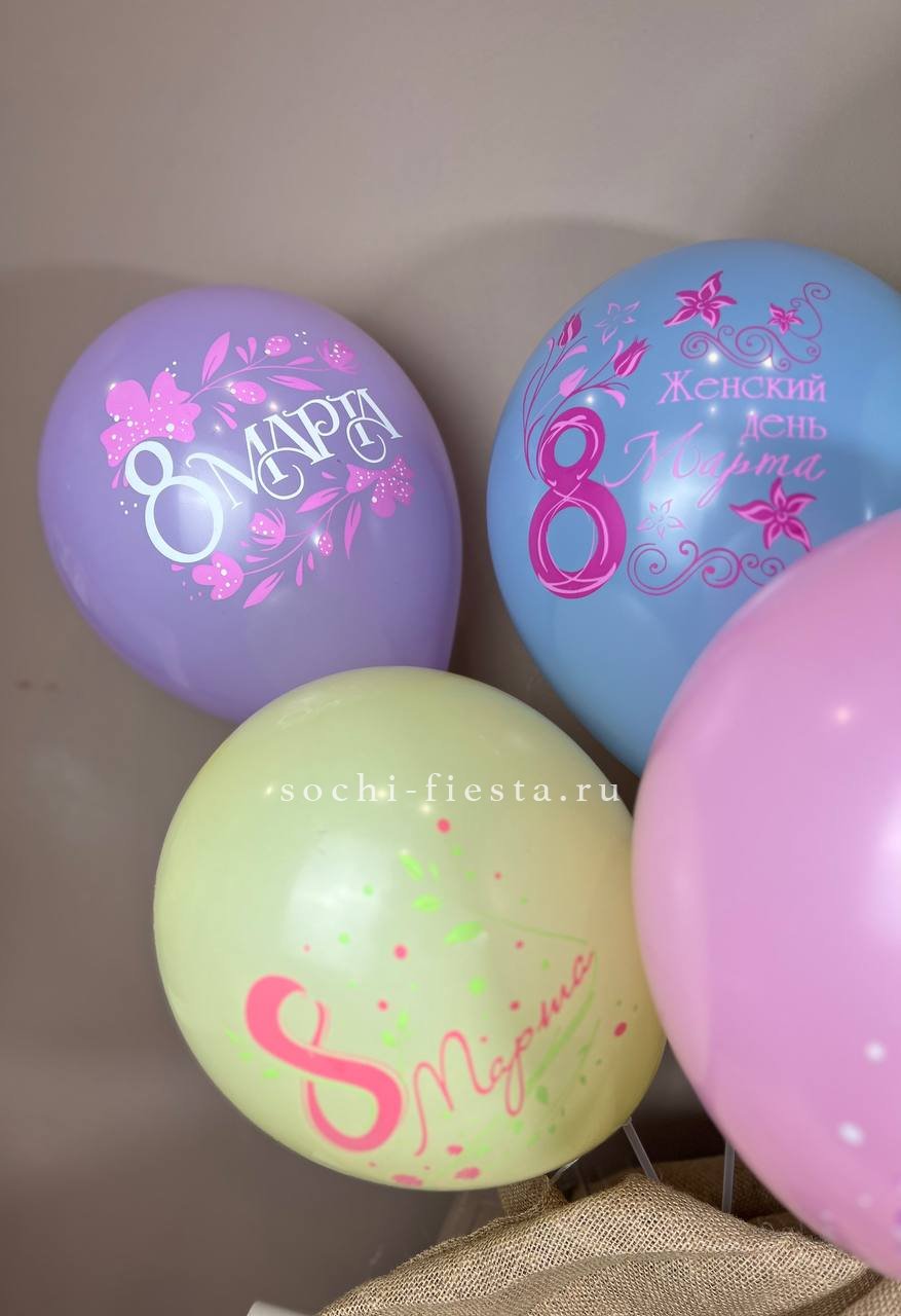 Гелиевый латексный шар С 8 МАРТА! (цвет на выбор)
