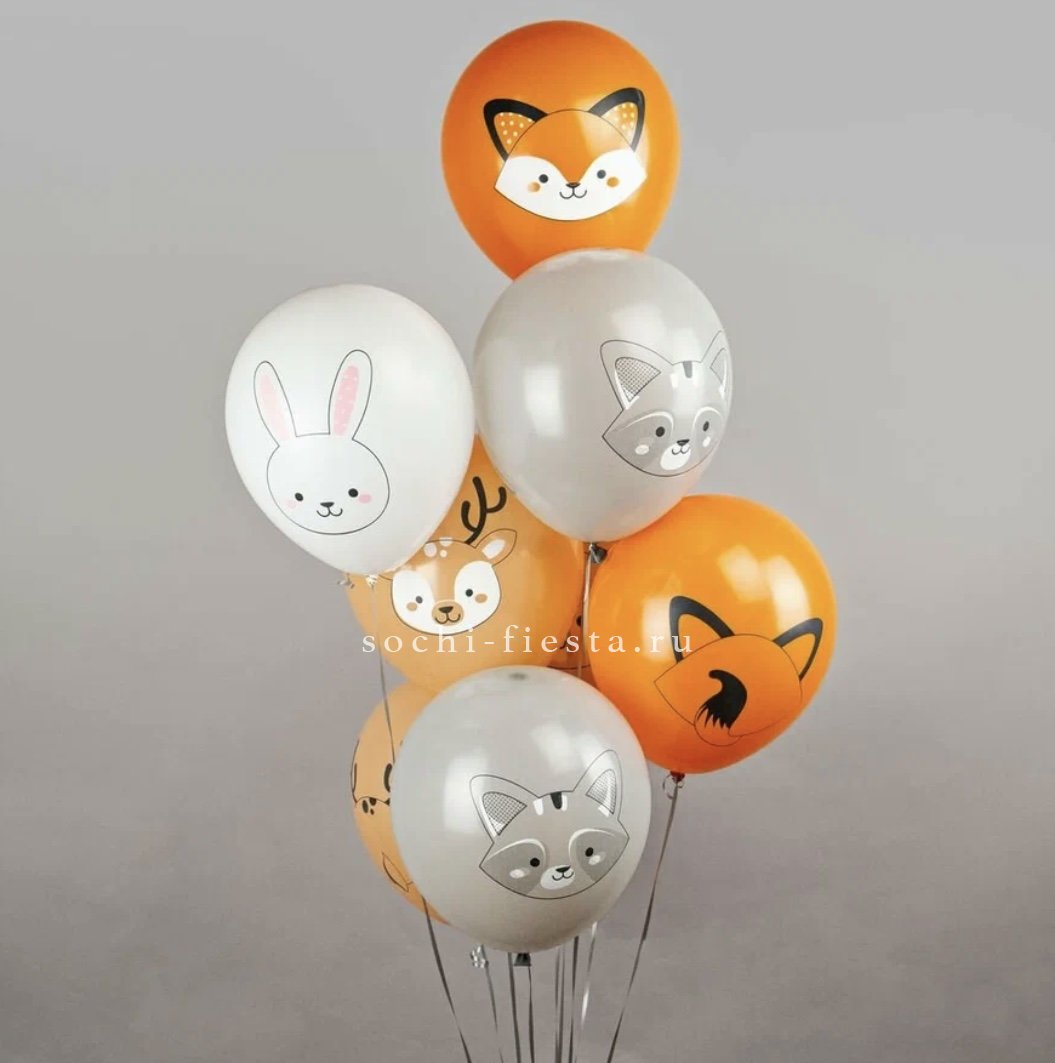 цена указана за 1 латексный шар. На выбор дизайн: зайка, лисенок, мишка, енот, олень. Шар продается как дополнительный ассортимент к букету.