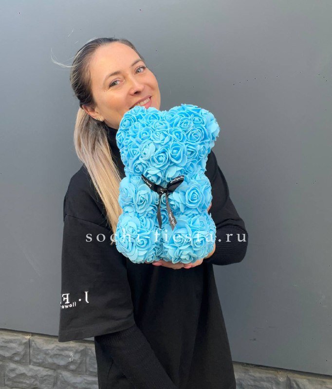 Медведь из фоамирана выглядит воздушным благодаря особой текстуре материала. Голубой цвет придает фигурке свежесть, а аккуратные пропорции делают её милым дополнением к любому подарку.