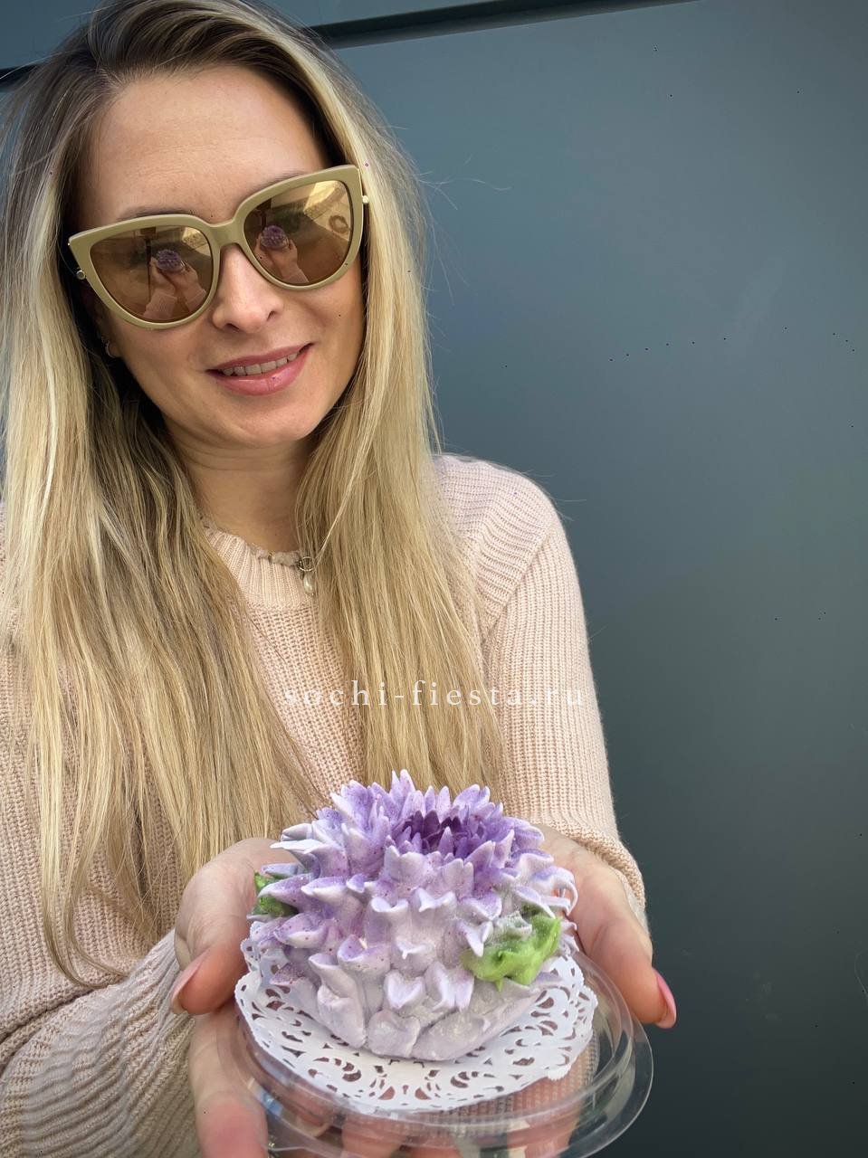 зефир в форме цветка (на выбор форма и цвет: пион, роза). Состав: сахар, патока, пектин, агар, яблочное пюре, яичный белок, натуральный краситель, лимонная кислота. Цена за 1шт. Данный товар можно заказать только с букетом, цветочной композицией, шарами или подарочной корзиной.