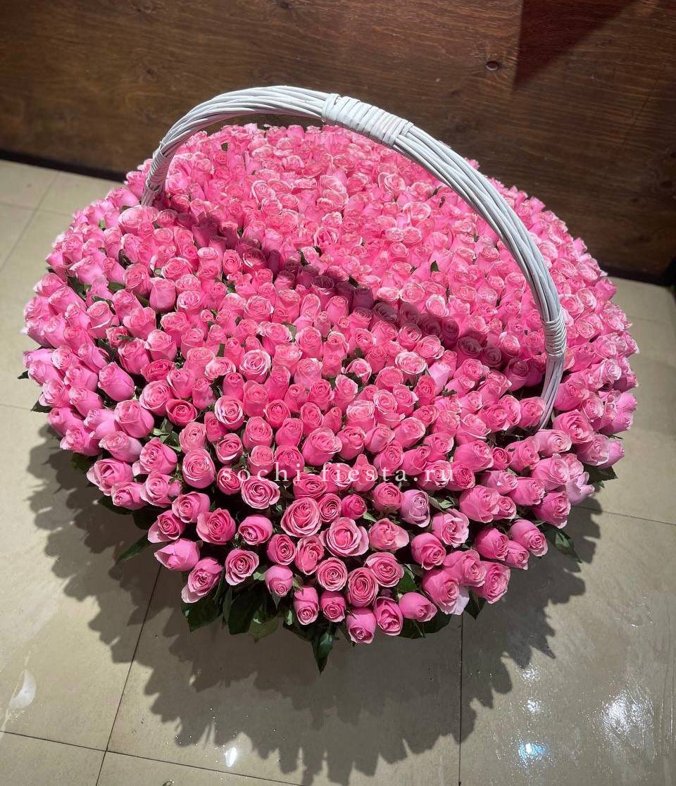 Букет сохраняет свежесть и форму благодаря устойчивой основе корзины.