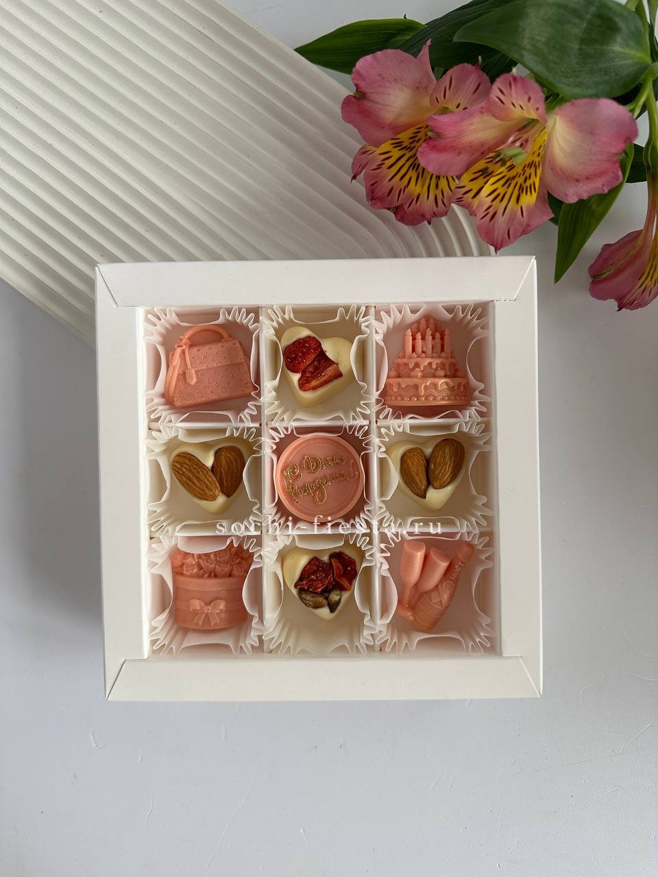 Если хотите что-то особенное — подобрать дизайнерскую открытку или добавить персональное послание — можно в разделе поздравительных открыток.