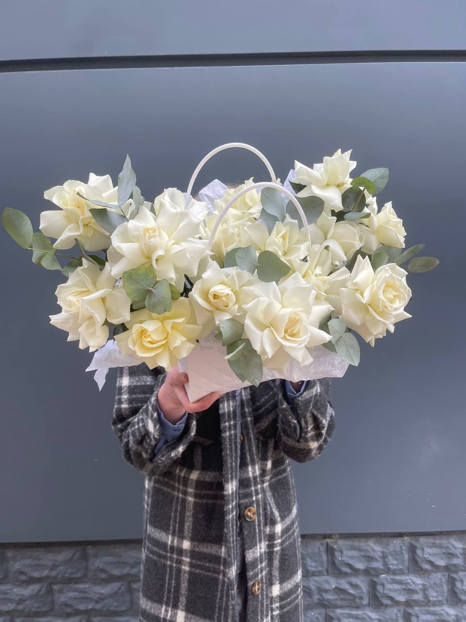 Мы работаем только со свежими цветами — букеты радуют от 7 до 14 дней и дольше при правильном уходе.