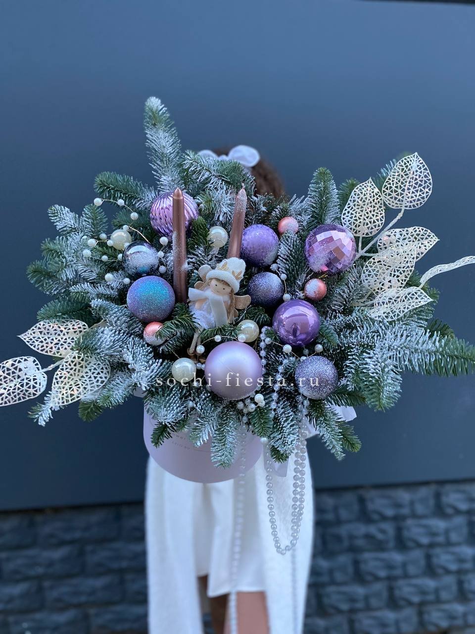нобилис, цилиндр, оазис, свечи, новогодние игрушки, декор ВНИМАНИЕ! Готовая композиция (декор) может иметь незначительные внешние отличия от примера на фотографии.