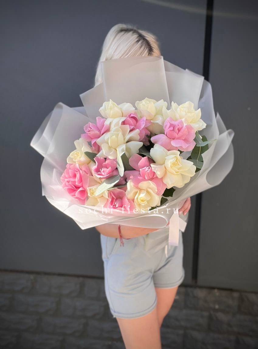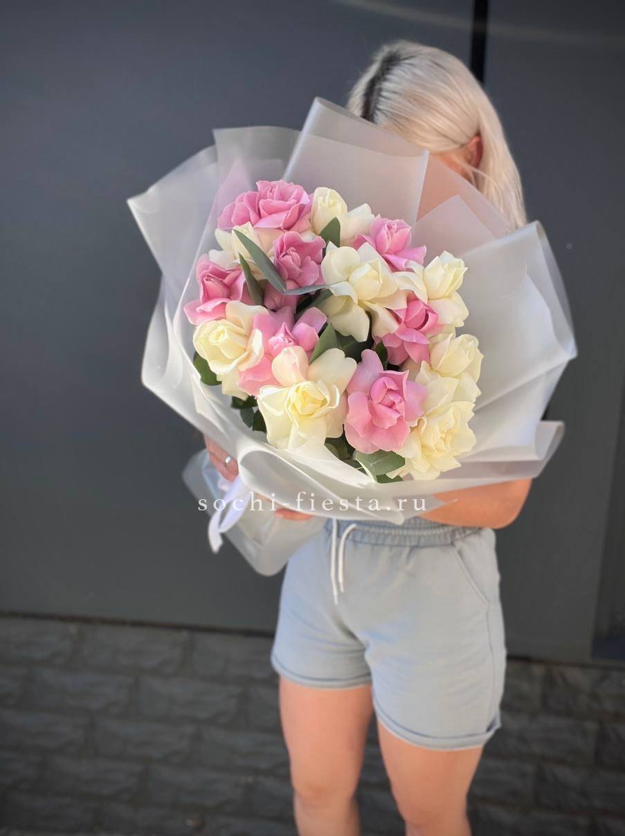 Для заказа товара "15 бело-розовых роз" с доставкой в Кирове нажмите в корзину