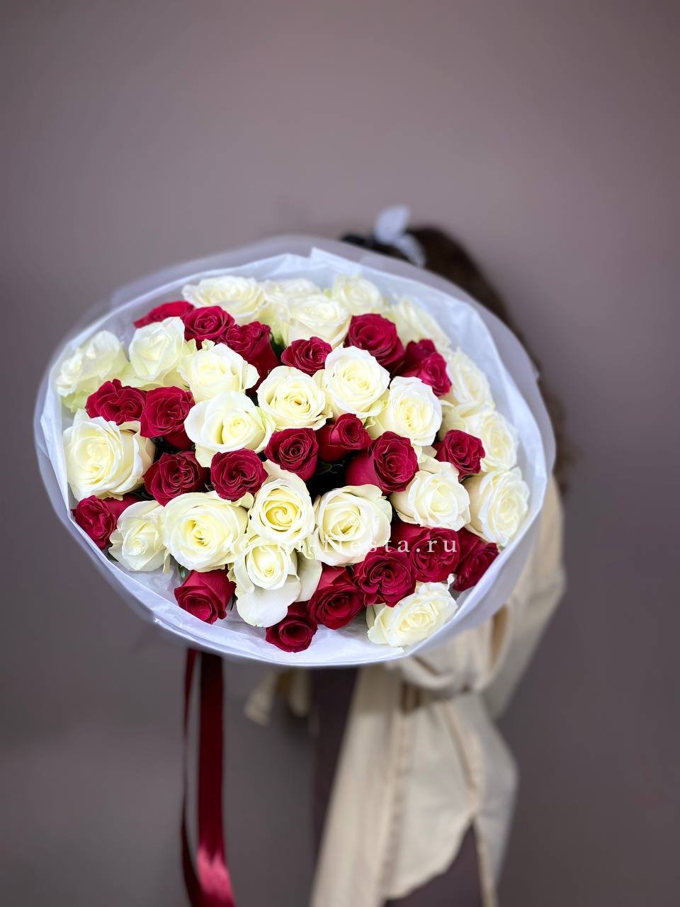 Для заказа товара "Букет из красных белых 45 роз" с доставкой в Кирове нажмите в корзину