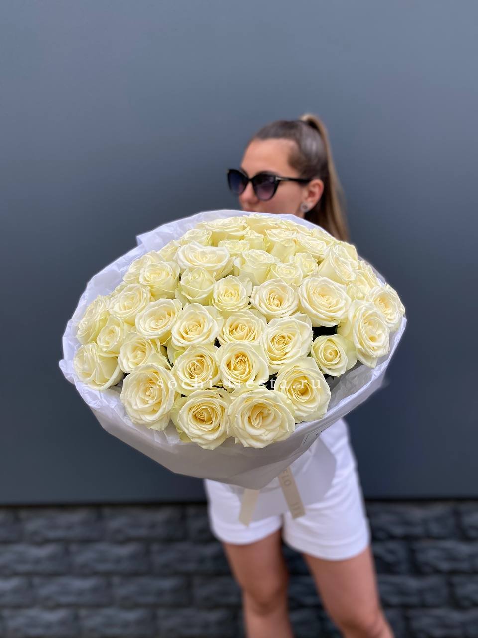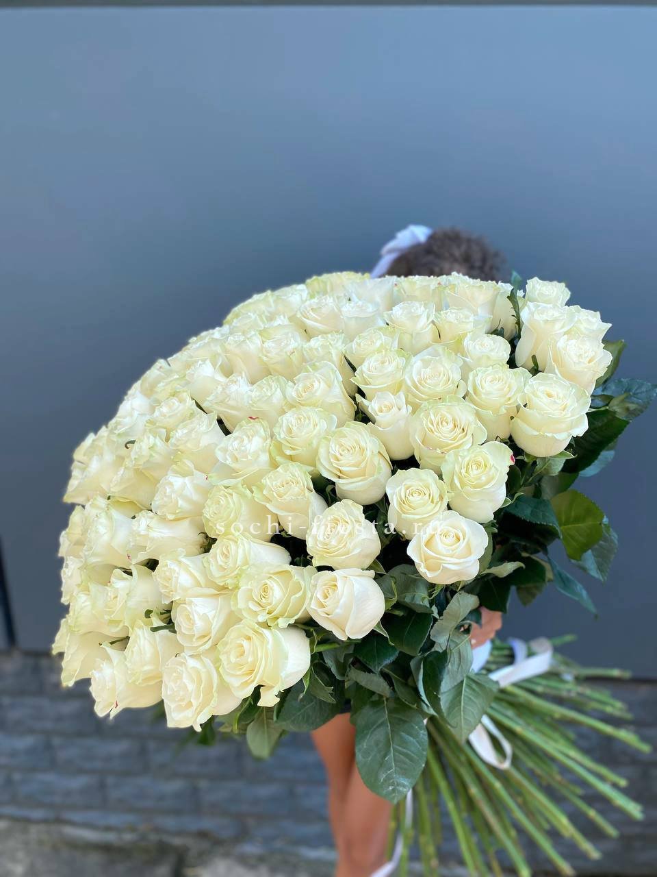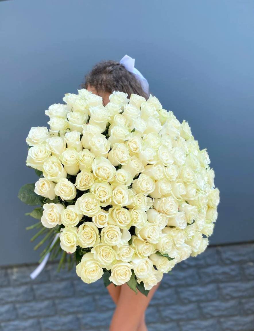 Пятнадцать белых роз в тонкой дизайнерской упаковке создают ощущение лёгкости и чистоты. Матовая текстура бумаги и мягкие складки подчёркивают форму каждого бутона. Композиция выглядит свежо и современно.