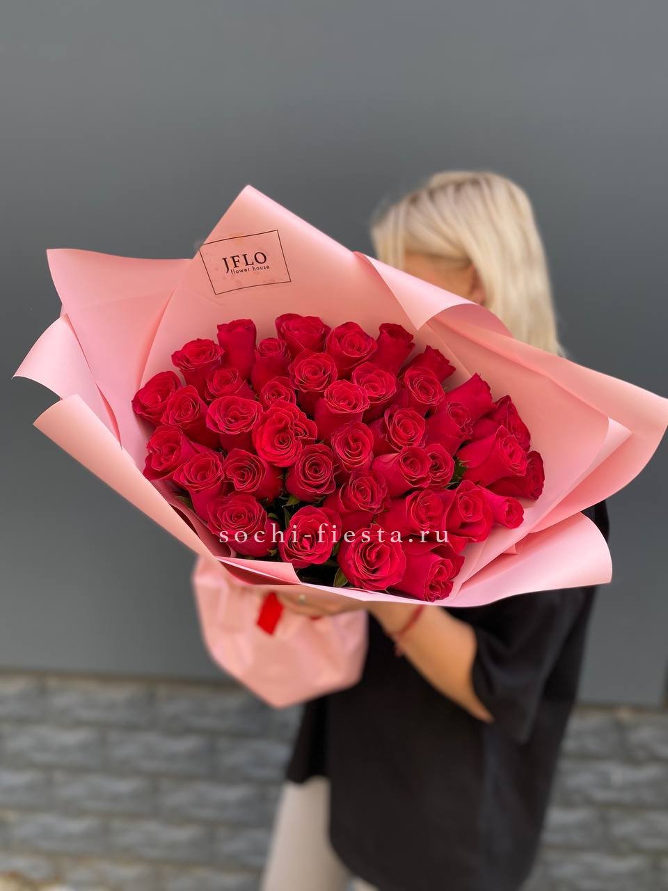 Тридцать пять алых роз собраны в букет с чёткими линиями и выверенным силуэтом. Классическая форма и насыщенный оттенок лепестков делают композицию универсальной для любого повода.