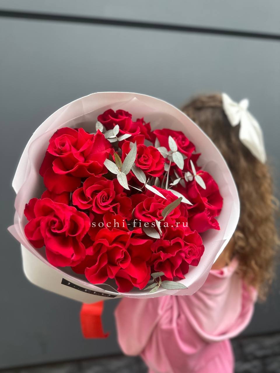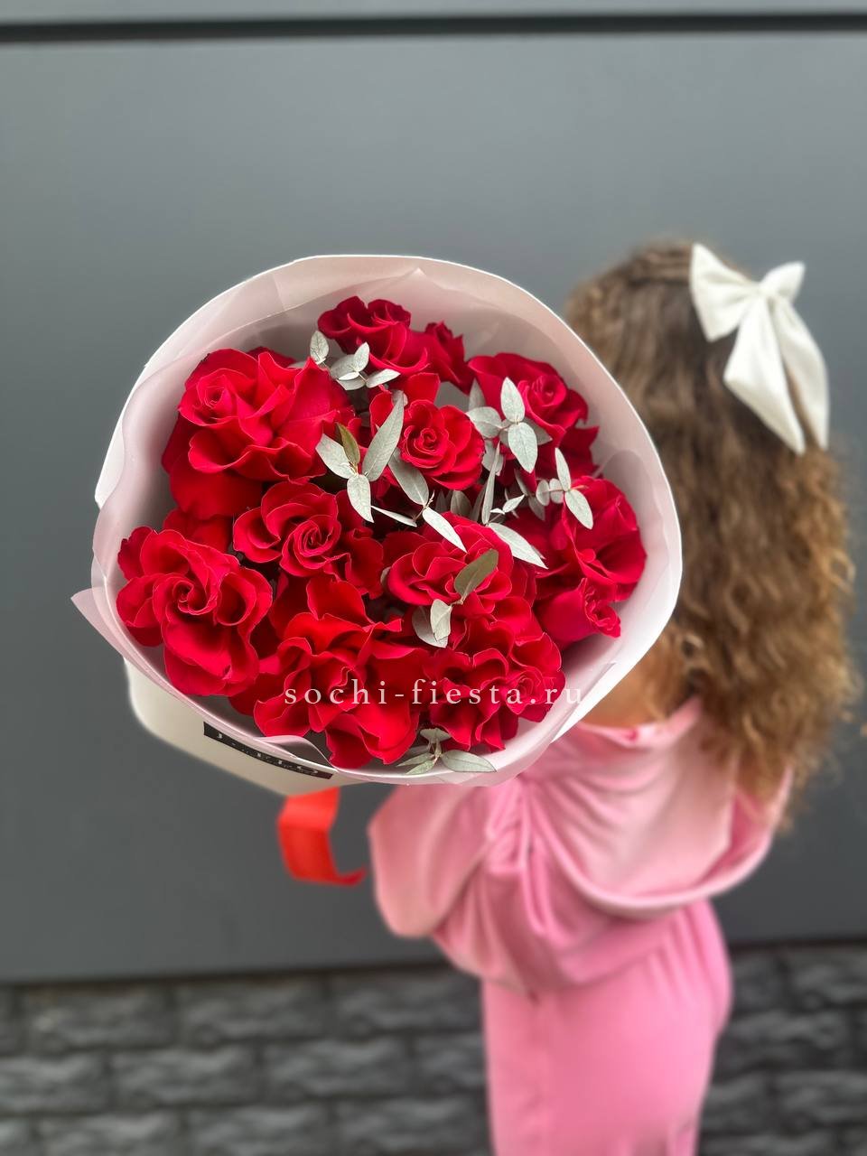 вывернутые розы - 19 шт., эвкалипт - 1шт., лента, авторская упаковка.