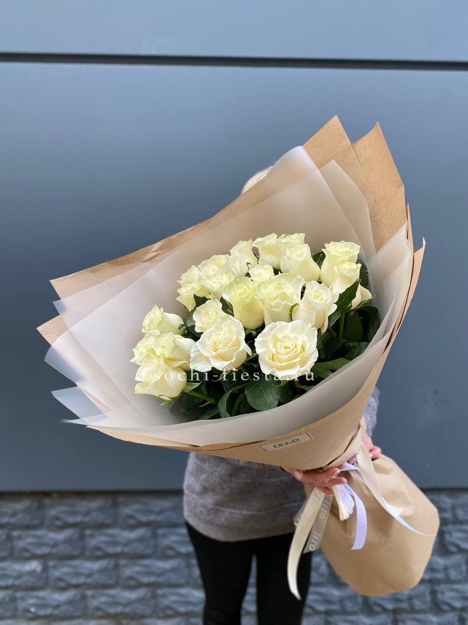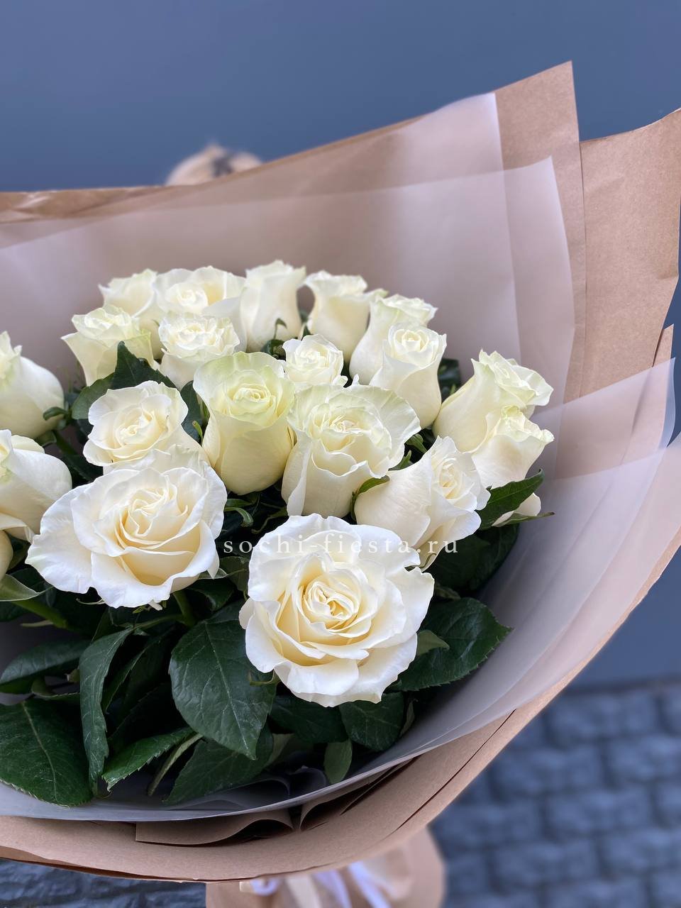 Для заказа товара " Букет высоких белых роз " с доставкой в Кирове нажмите в корзину