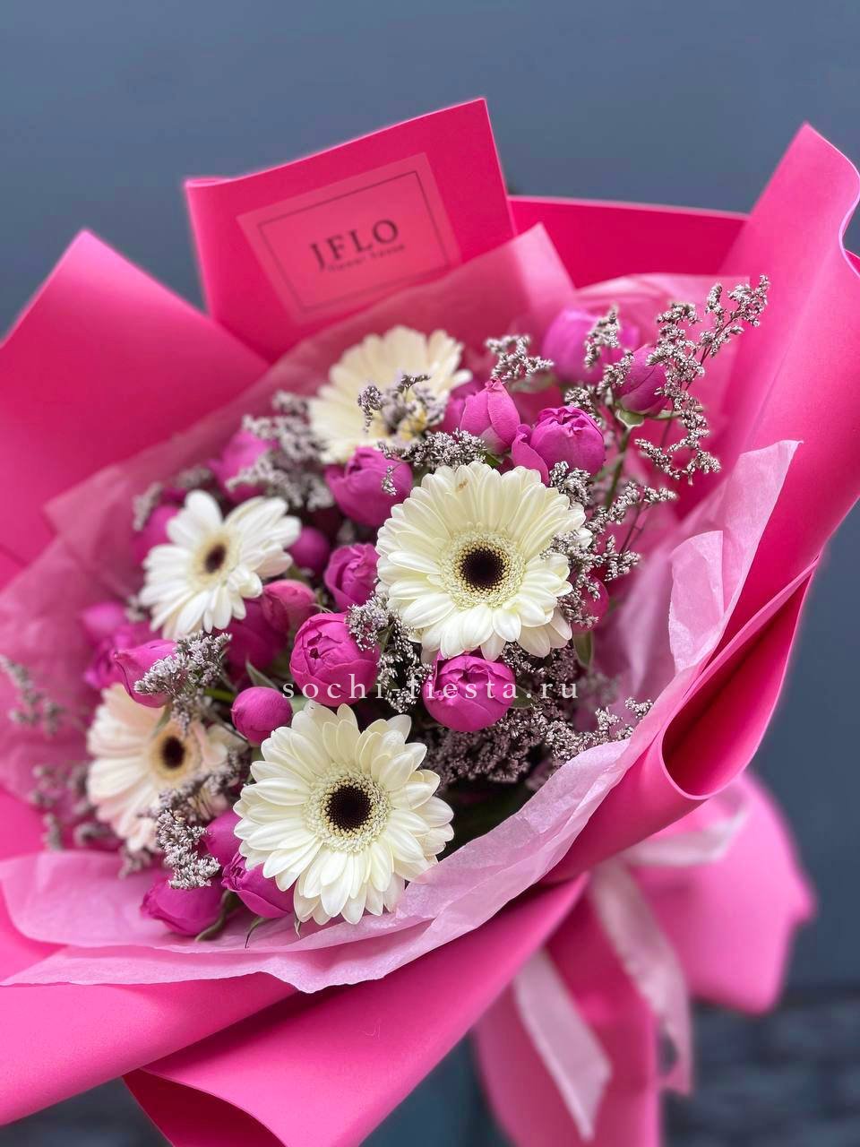 Мы работаем только со свежими цветами — букеты радуют от 7 до 14 дней и дольше при правильном уходе.