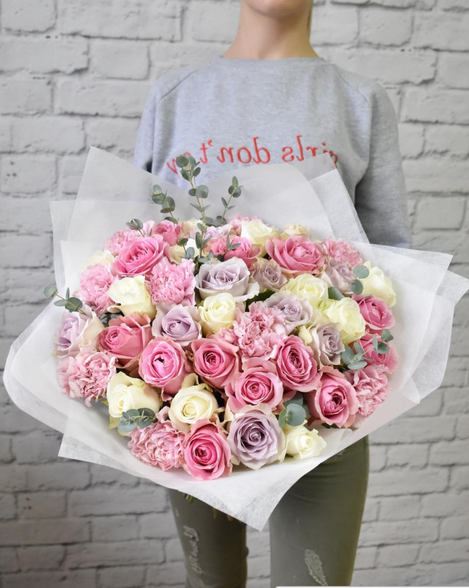 Мы работаем только со свежими цветами — букеты радуют от 7 до 14 дней и дольше при правильном уходе.