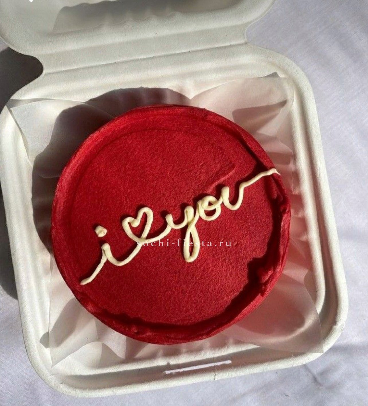 Три слова на поверхности торта говорят без лишних объяснений. Крем и декор создают завершенную картинку в формате персональной порции. Начинка на выбор делает момент еще приятнее.